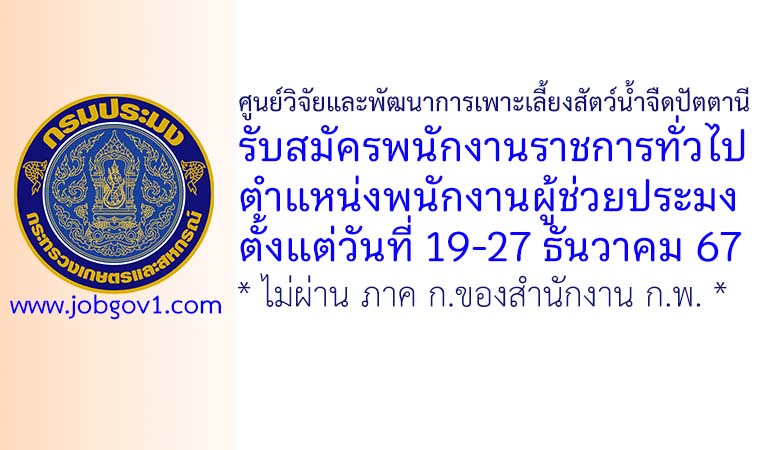 ศูนย์วิจัยและพัฒนาการเพาะเลี้ยงสัตว์น้ำจืดปัตตานี รับสมัครพนักงานราชการทั่วไป ตำแหน่งพนักงานผู้ช่วยประมง ตั้งแต่วันที่ 19-27 ธันวาคม 2567
