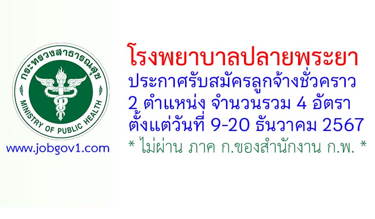 โรงพยาบาลปลายพระยา รับสมัครลูกจ้างชั่วคราว 4 อัตรา ตั้งแต่วันที่ 9-20 ธันวาคม 2567