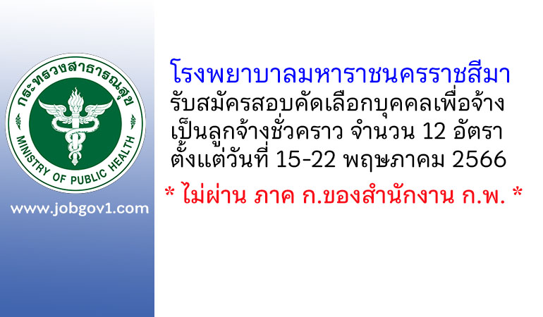 โรงพยาบาลมหาราชนครราชสีมา รับสมัครสอบคัดเลือกบุคคลเพื่อจ้างเป็นลูกจ้างชั่วคราว 12 อัตรา ตั้งแต่วันที่ 15-22 พฤษภาคม 2566