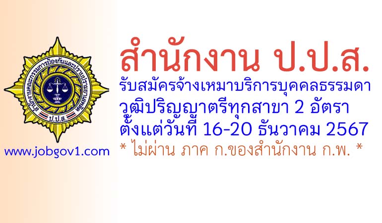 สำนักงาน ป.ป.ส. รับสมัครจ้างเหมาบริการบุคคลธรรมดา จำนวน 2 อัตรา ตั้งแต่วันที่ 16-20 ธันวาคม 2567