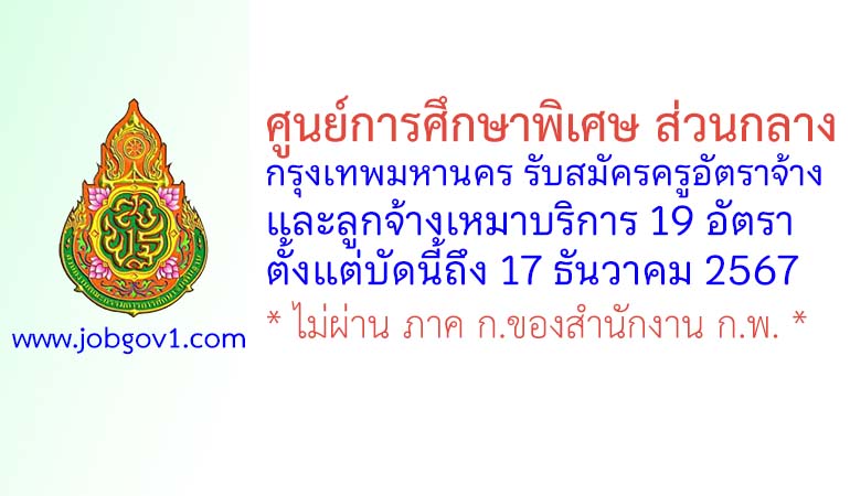 ศูนย์การศึกษาพิเศษ ส่วนกลาง กรุงเทพมหานคร รับสมัครครูอัตราจ้าง และลูกจ้างเหมาบริการ 19 อัตรา ตั้งแต่บัดนี้ถึง 17 ธันวาคม 2567