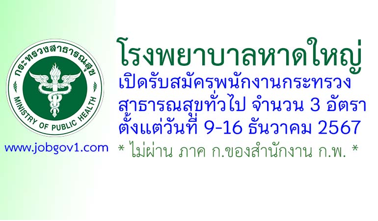 โรงพยาบาลหาดใหญ่ รับสมัครพนักงานกระทรวงสาธารณสุขทั่วไป 3 อัตรา ตั้งแต่วันที่ 9-16 ธันวาคม 2567
