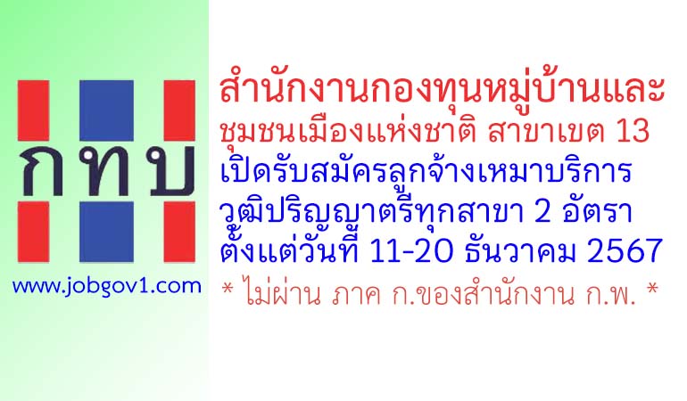 สำนักงานกองทุนหมู่บ้านและชุมชนเมืองแห่งชาติ สาขาเขต 13 รับสมัครลูกจ้างเหมาบริการ 2 อัตรา ตั้งแต่วันที่ 11-20 ธันวาคม 2567