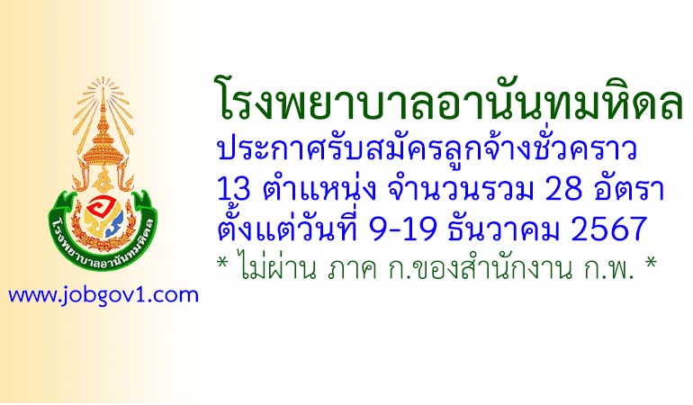 โรงพยาบาลอานันทมหิดล รับสมัครลูกจ้างชั่วคราว 28 อัตรา ตั้งแต่วันที่ 9-19 ธันวาคม 2567