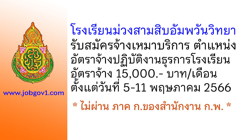 โรงเรียนม่วงสามสิบอัมพวันวิทยา รับสมัครจ้างเหมาบริการ ตำแหน่งอัตราจ้างปฏิบัติงานธุรการโรงเรียน ตั้งแต่วันที่ 5-11 พฤษภาคม 2566