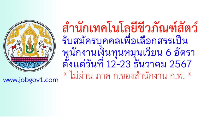 สำนักเทคโนโลยีชีวภัณฑ์สัตว์ รับสมัครบุคคลเพื่อเลือกสรรเป็นพนักงานเงินทุนหมุนเวียน 6 อัตรา ตั้งแต่วันที่ 12-23 ธันวาคม 2567