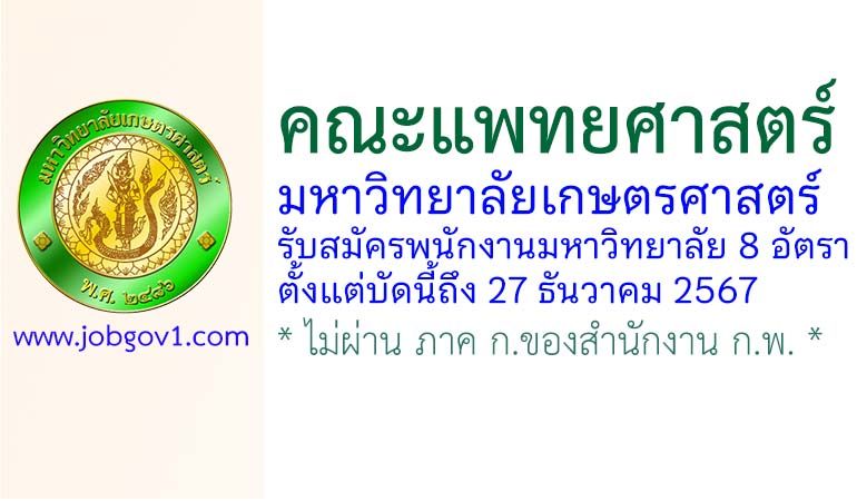 คณะแพทยศาสตร์ มหาวิทยาลัยเกษตรศาสตร์ รับสมัครพนักงานมหาวิทยาลัยเงินรายได้ 8 อัตรา ตั้งแต่บัดนี้ถึง 27 ธันวาคม 2567