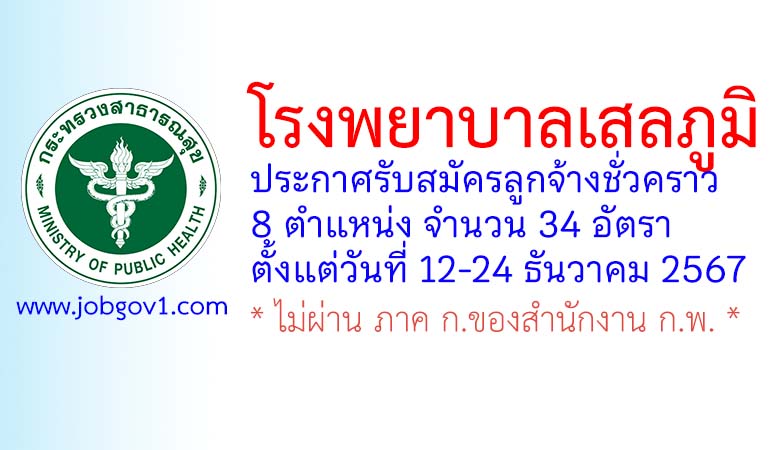 โรงพยาบาลเสลภูมิ รับสมัครลูกจ้างชั่วคราว 34 อัตรา ตั้งแต่วันที่ 12-24 ธันวาคม 2567
