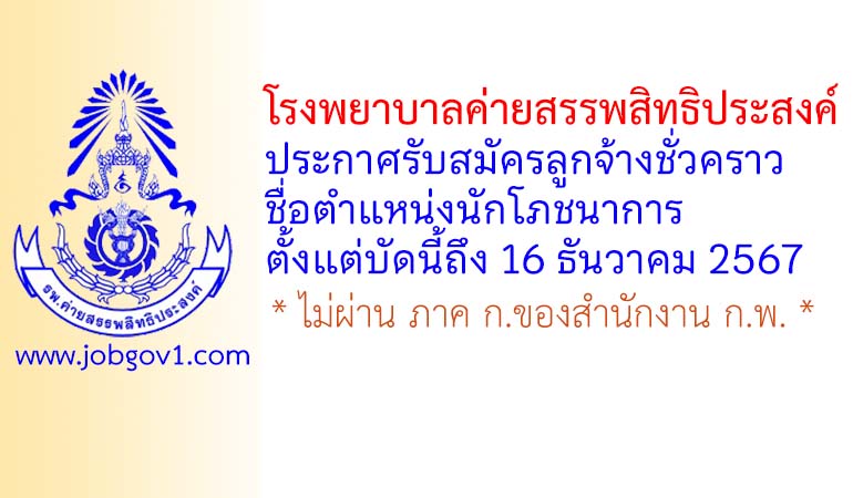 โรงพยาบาลค่ายสรรพสิทธิประสงค์ รับสมัครลูกจ้างชั่วคราว ตำแหน่งนักโภชนาการ ตั้งแต่บัดนี้ถึง 16 ธันวาคม 2567