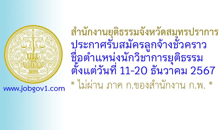 สำนักงานยุติธรรมจังหวัดสมุทรปราการ รับสมัครลูกจ้างชั่วคราว ตำแหน่งนักวิชาการยุติธรรม ตั้งแต่วันที่ 11-20 ธันวาคม 2567