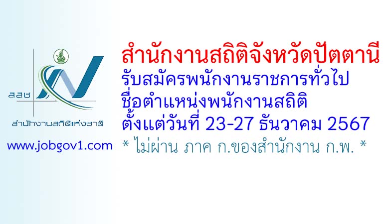 สำนักงานสถิติจังหวัดปัตตานี รับสมัครพนักงานราชการทั่วไป ตำแหน่งพนักงานสถิติ ตั้งแต่วันที่ 23-27 ธันวาคม 2567