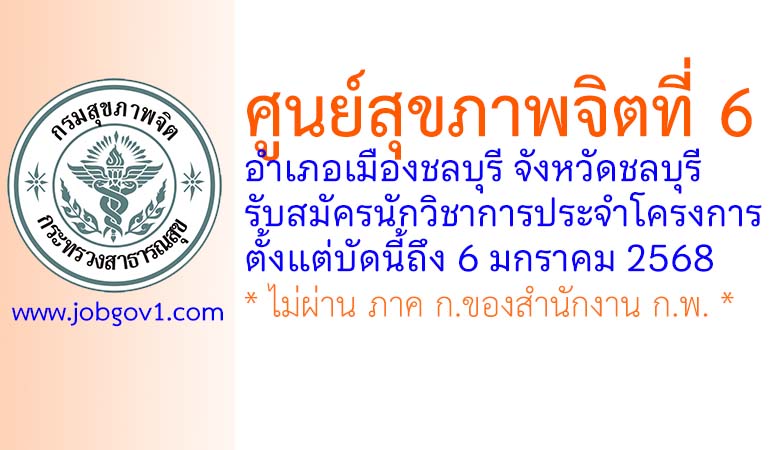 ศูนย์สุขภาพจิตที่ 6 รับสมัครนักวิชาการประจำโครงการ ตั้งแต่บัดนี้ถึง 6 มกราคม 2568