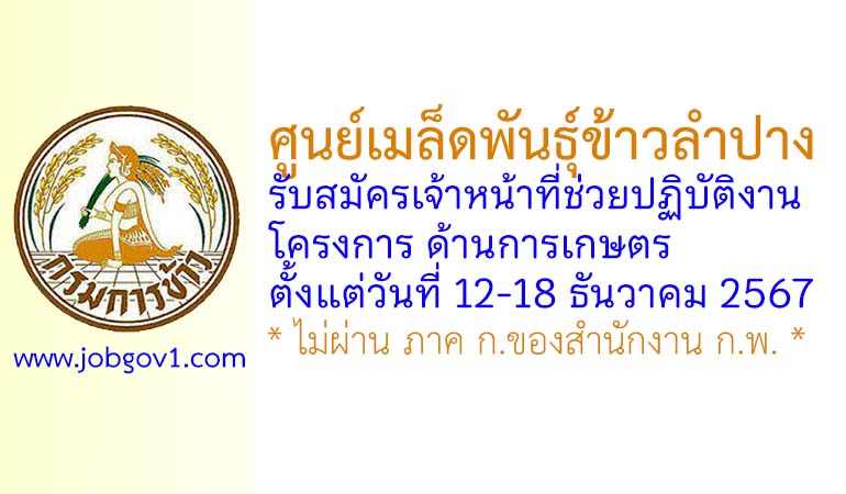 ศูนย์เมล็ดพันธุ์ข้าวลำปาง รับสมัครเจ้าหน้าที่ช่วยปฏิบัติงานโครงการ ด้านการเกษตร ตั้งแต่วันที่ 12-18 ธันวาคม 2567