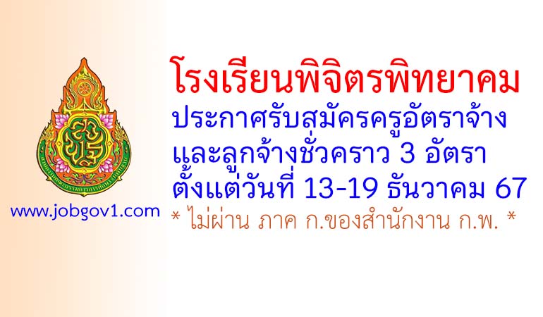 โรงเรียนพิจิตรพิทยาคม รับสมัครครูอัตราจ้าง และลูกจ้างชั่วคราว 3 อัตรา ตั้งแต่วันที่ 13-19 ธันวาคม 2567