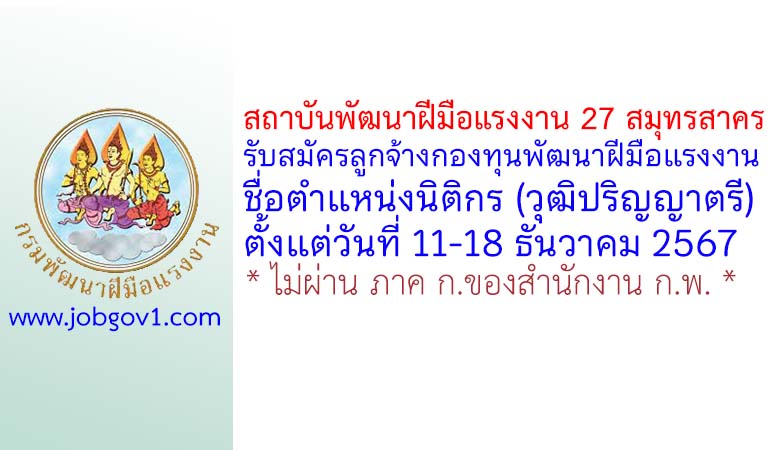 สถาบันพัฒนาฝีมือแรงงาน 27 สมุทรสาคร รับสมัครลูกจ้างกองทุนพัฒนาฝีมือแรงงาน ตำแหน่งนิติกร ตั้งแต่วันที่ 11-18 ธันวาคม 2567