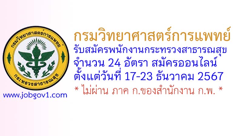 กรมวิทยาศาสตร์การแพทย์ รับสมัครพนักงานกระทรวงสาธารณสุขทั่วไป 24 อัตรา ตั้งแต่วันที่ 17-23 ธันวาคม 2567