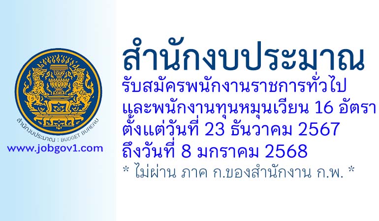 สำนักงบประมาณ รับสมัครบุคคลเพื่อเลือกสรรเป็นพนักงานราชการและพนักงานทุนหมุนเวียน 16 อัตรา ตั้งแต่ 23 ธันวาคม 2567 ถึง 8 มกราคม 2568