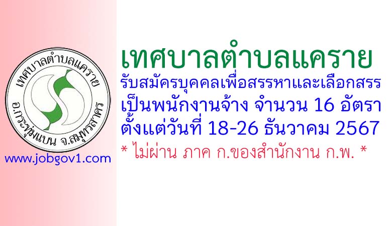 เทศบาลตำบลแคราย รับสมัครบุคคลเพื่อสรรหาและเลือกสรรเป็นพนักงานจ้าง 16 อัตรา ตั้งแต่วันที่ 18-26 ธันวาคม 2567