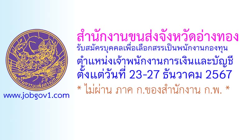 สำนักงานขนส่งจังหวัดอ่างทอง รับสมัครบุคคลเพื่อเลือกสรรเป็นพนักงานกองทุน ตำแหน่งเจ้าพนักงานการเงินและบัญชี ตั้งแต่วันที่ 23-27 ธันวาคม 2567