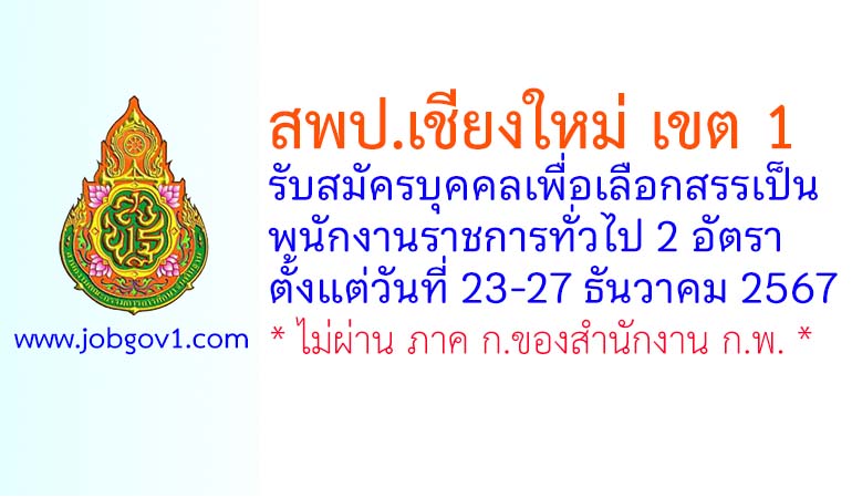 สพป.เชียงใหม่ เขต 1 รับสมัครบุคคลเพื่อเลือกสรรเป็นพนักงานราชการทั่วไป 2 อัตรา ตั้งแต่วันที่ 23-27 ธันวาคม 2567