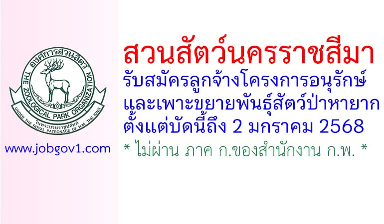 สวนสัตว์นครราชสีมา รับสมัครลูกจ้างโครงการอนุรักษ์และเพาะขยายพันธุ์สัตว์ป่าหายาก ตั้งแต่บัดนี้ถึง 2 มกราคม 2568
