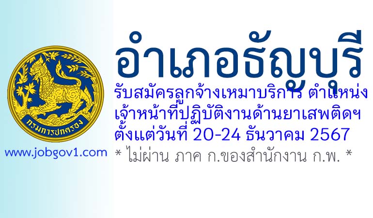 อำเภอธัญบุรี รับสมัครลูกจ้างเหมาบริการ ตำแหน่งเจ้าหน้าที่ปฏิบัติงานด้านยาเสพติดฯ ตั้งแต่วันที่ 20-24 ธันวาคม 2567