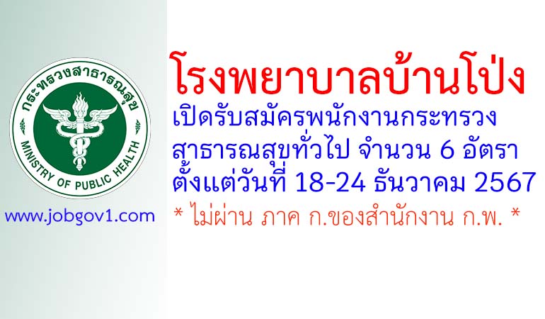 โรงพยาบาลบ้านโป่ง รับสมัครพนักงานกระทรวงสาธารณสุขทั่วไป 6 อัตรา ตั้งแต่วันที่ 18-24 ธันวาคม 2567