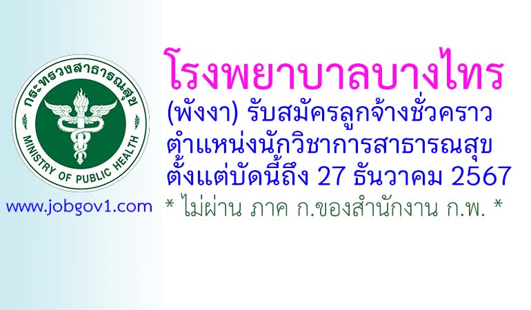 โรงพยาบาลบางไทร รับสมัครลูกจ้างชั่วคราว ตำแหน่งนักวิชาการสาธารณสุข ตั้งแต่บัดนี้ถึง 27 ธันวาคม 2567