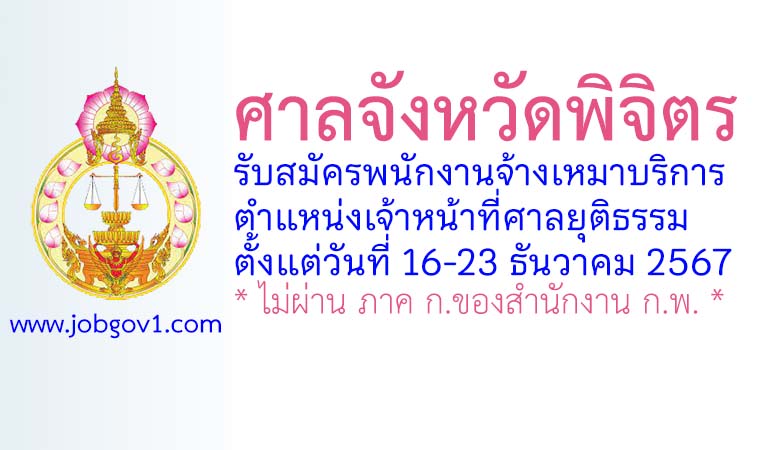 ศาลจังหวัดพิจิตร รับสมัครพนักงานจ้างเหมาบริการ ตำแหน่งเจ้าหน้าที่ศาลยุติธรรม ตั้งแต่วันที่ 16-23 ธันวาคม 2567