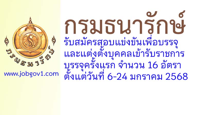 กรมธนารักษ์ รับสมัครสอบแข่งขันเพื่อบรรจุและแต่งตั้งบุคคลเข้ารับราชการ บรรจุครั้งแรก 16 อัตรา ตั้งแต่วันที่ 6-24 มกราคม 2568