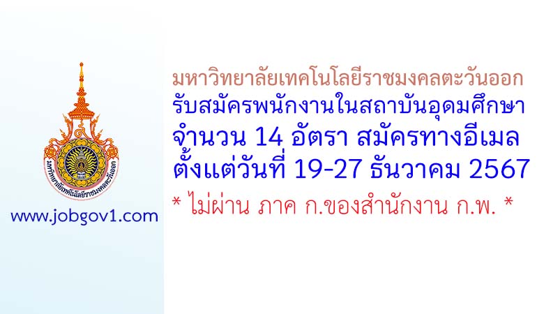มหาวิทยาลัยเทคโนโลยีราชมงคลตะวันออก รับสมัครพนักงานในสถาบันอุดมศึกษา 14 อัตรา ตั้งแต่วันที่ 19-27 ธันวาคม 2567