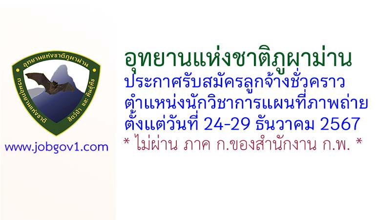 อุทยานแห่งชาติภูผาม่าน รับสมัครลูกจ้างชั่วคราว ตำแหน่งนักวิชาการแผนที่ภาพถ่าย ตั้งแต่วันที่ 24-29 ธันวาคม 2567