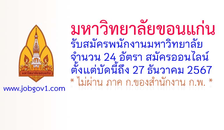 มหาวิทยาลัยขอนแก่น รับสมัครพนักงานมหาวิทยาลัย 24 อัตรา ตั้งแต่บัดนี้ถึง 27 ธันวาคม 2567