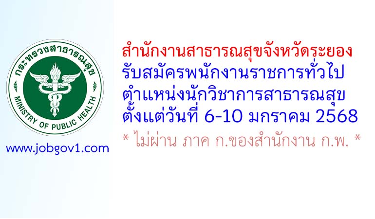 สำนักงานสาธารณสุขจังหวัดระยอง รับสมัครพนักงานราชการทั่วไป ตำแหน่งนักวิชาการสาธารณสุข ตั้งแต่วันที่ 6-10 มกราคม 2568