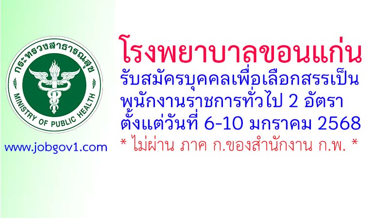 โรงพยาบาลขอนแก่น รับสมัครบุคคลเพื่อเลือกสรรเป็นพนักงานราชการทั่วไป 2 อัตรา ตั้งแต่วันที่ 6-10 มกราคม 2568