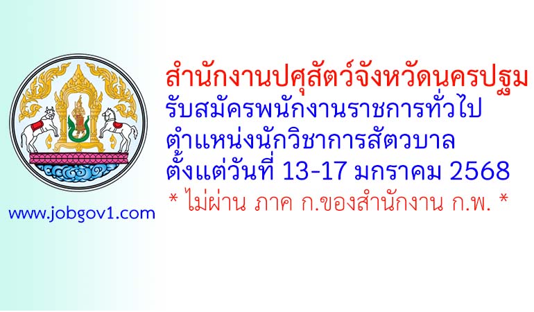 สำนักงานปศุสัตว์จังหวัดนครปฐม รับสมัครพนักงานราชการทั่วไป ตำแหน่งนักวิชาการสัตวบาล ตั้งแต่วันที่ 13-17 มกราคม 2568