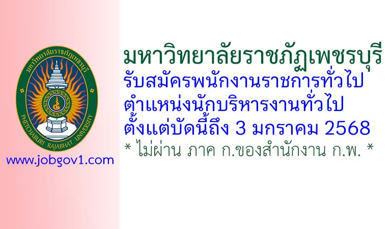 มหาวิทยาลัยราชภัฏเพชรบุรี รับสมัครพนักงานราชการทั่วไป ตำแหน่งนักบริหารงานทั่วไป ตั้งแต่บัดนี้ถึง 3 มกราคม 2568