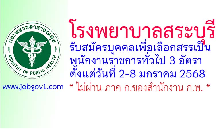 โรงพยาบาลสระบุรี รับสมัครบุคคลเพื่อเลือกสรรเป็นพนักงานราชการทั่วไป 3 อัตรา ตั้งแต่วันที่ 2-8 มกราคม 2568