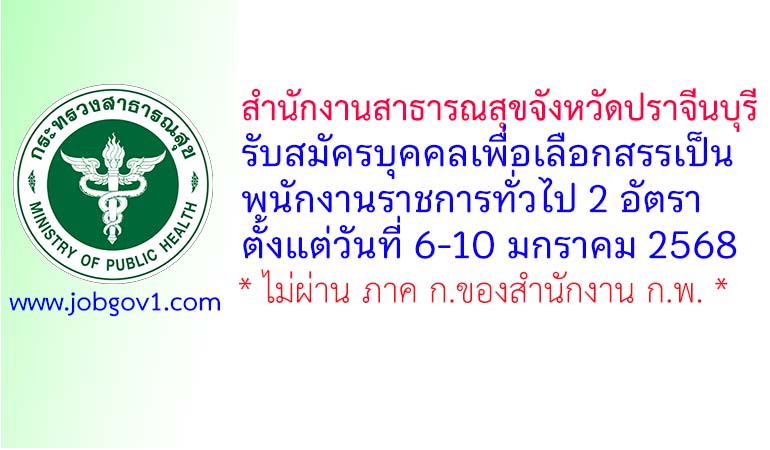 สำนักงานสาธารณสุขจังหวัดปราจีนบุรี รับสมัครบุคคลเพื่อเลือกสรรเป็นพนักงานราชการทั่วไป 2 อัตรา ตั้งแต่วันที่ 6-10 มกราคม 2568
