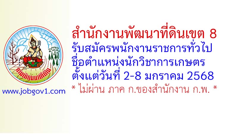 สำนักงานพัฒนาที่ดินเขต 8 รับสมัครพนักงานราชการทั่วไป ตำแหน่งนักวิชาการเกษตร ตั้งแต่วันที่ 2-8 มกราคม 2568