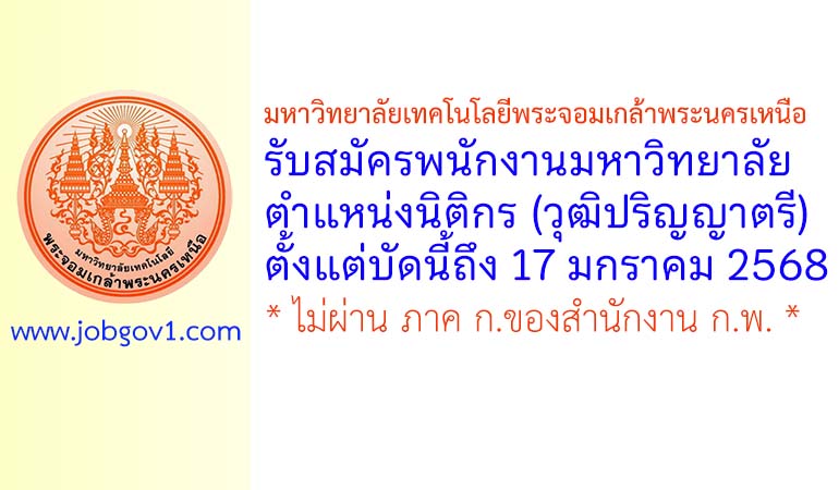 มหาวิทยาลัยเทคโนโลยีพระจอมเกล้าพระนครเหนือ รับสมัครพนักงานมหาวิทยาลัย ตำแหน่งนิติกร ตั้งแต่บัดนี้ถึง 17 มกราคม 2568