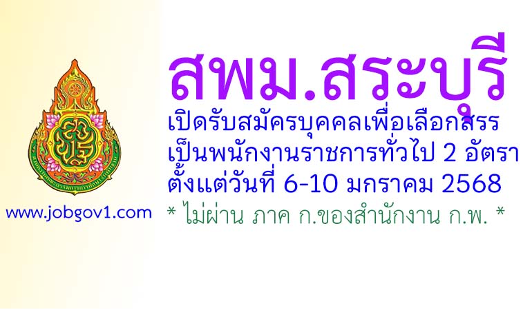 สพม.สระบุรี รับสมัครบุคคลเพื่อเลือกสรรเป็นพนักงานราชการทั่วไป 2 อัตรา ตั้งแต่วันที่ 6-10 มกราคม 2568