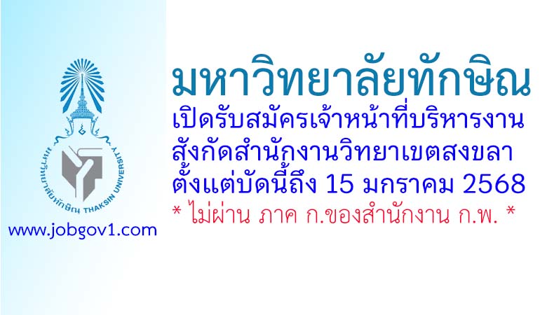 มหาวิทยาลัยทักษิณ รับสมัครเจ้าหน้าที่บริหารงาน สังกัดสำนักงานวิทยาเขตสงขลา ตั้งแต่บัดนี้ถึง 15 มกราคม 2568