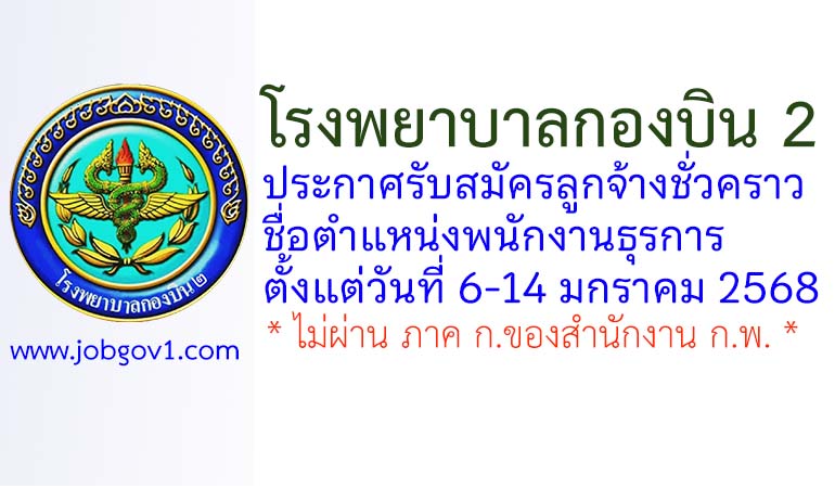 โรงพยาบาลกองบิน 2 รับสมัครลูกจ้างชั่วคราว ตำแหน่งพนักงานธุรการ ตั้งแต่วันที่ 6-14 มกราคม 2568