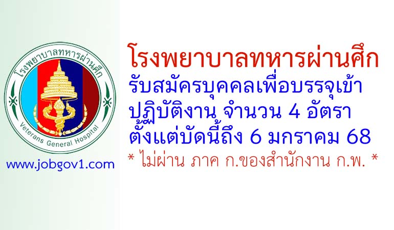 โรงพยาบาลทหารผ่านศึก รับสมัครบุคคลเพื่อบรรจุเข้าปฏิบัติงาน 4 อัตรา ตั้งแต่บัดนี้ถึง 6 มกราคม 2568