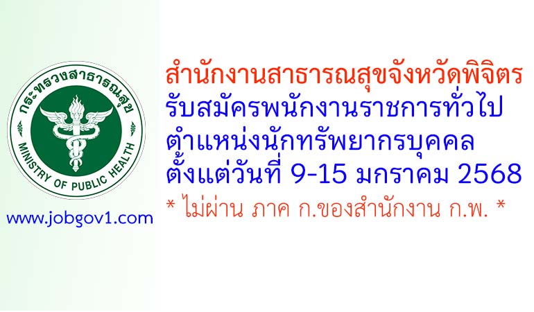 สำนักงานสาธารณสุขจังหวัดพิจิตร รับสมัครพนักงานราชการทั่วไป ตำแหน่งนักทรัพยากรบุคคล ตั้งแต่วันที่ 9-15 มกราคม 2568