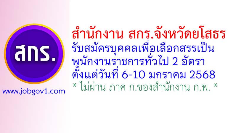 สำนักงาน สกร.จังหวัดยโสธร รับสมัครบุคคลเพื่อเลือกสรรเป็นพนักงานราชการทั่วไป 2 อัตรา ตั้งแต่วันที่ 6-10 มกราคม 2568