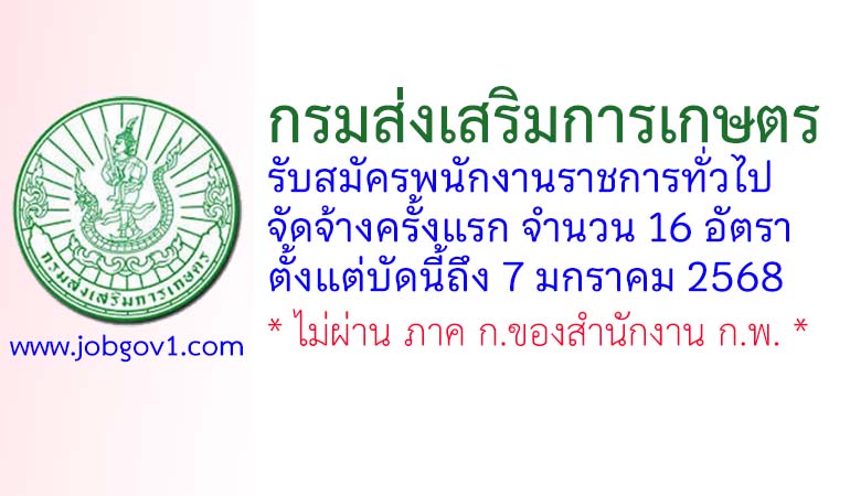 กรมส่งเสริมการเกษตร รับสมัครบุคคลเพื่อเลือกสรรเป็นพนักงานราชการทั่วไป จัดจ้างครั้งแรก 16 อัตรา ตั้งแต่บัดนี้ถึง 7 มกราคม 2568