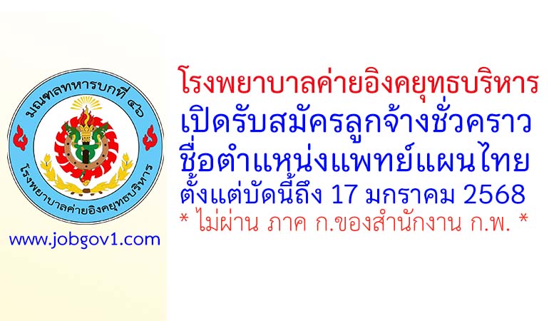 โรงพยาบาลค่ายอิงคยุทธบริหาร รับสมัครลูกจ้างชั่วคราว ตำแหน่งแพทย์แผนไทย ตั้งแต่บัดนี้ถึง 17 มกราคม 2568