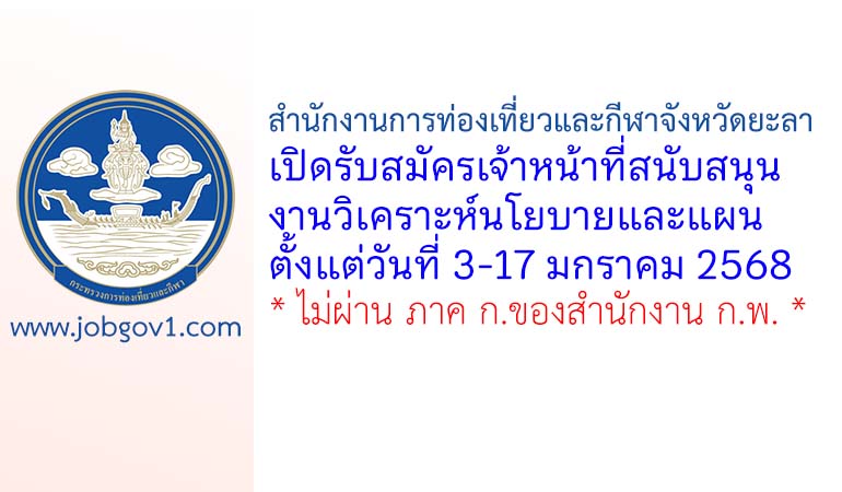 สำนักงานการท่องเที่ยวและกีฬาจังหวัดยะลา รับสมัครเจ้าหน้าที่สนับสนุนงานวิเคราะห์นโยบายและแผน ตั้งแต่วันที่ 3-17 มกราคม 2568